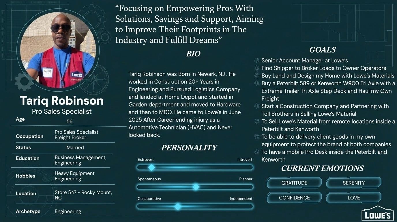 This goes back in the 1990's to present day I don't want to use names. To keep this about the question. It started from a person that was an real estate agent. My mother told me out of her words. This is a good woman take care of her. So when i seen her passion, it elevated me. I didn't know residential construction. Until i came to Lowe's at Hope Depot it was about Logistics. Our competitor was Amazon. If you take a moment to look at this. If the owner of Lowe's and our Store manager and myself came from Lowe's That shows how strong we where. When President Trump in his first term went to Atlanta to our Front Office and gave tax break for big business. Home Depot invested to the logistics market.