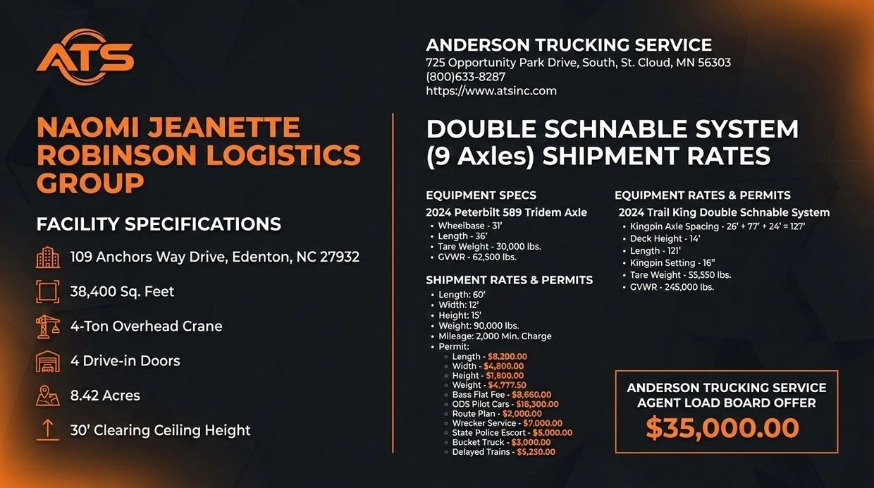 Anderson Trucking Service Agent Load Board ($2,500.00Per Day x 14 Days) Offer- $35,000.00